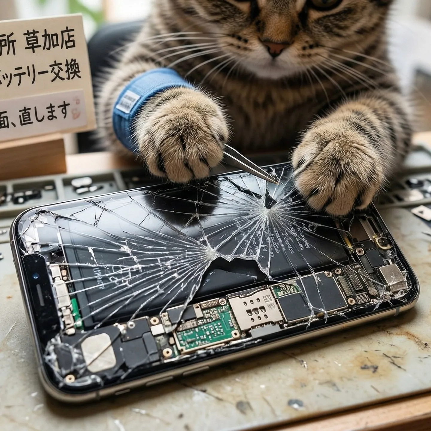 #iPhone診療所 #草加 #iPhone修理 #画面修理 #画面割れ #バキバキ #猫 #修理屋 #草加市 #獨協大学前